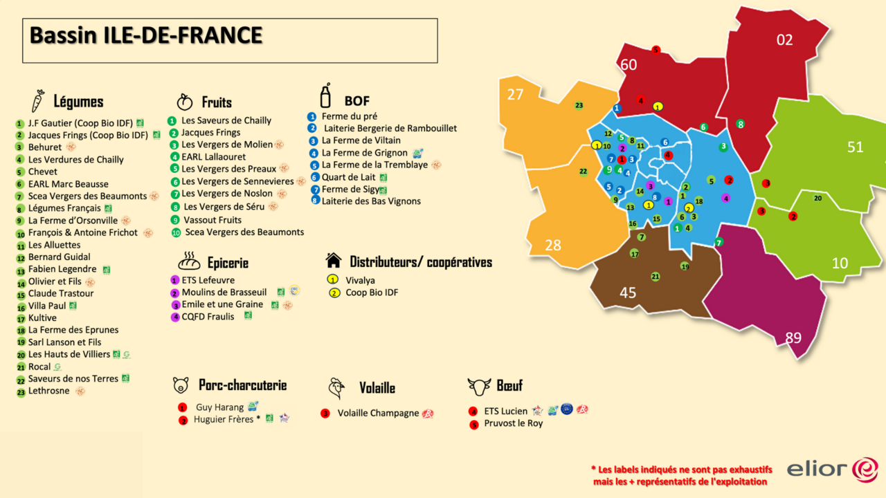 - 21 % de produits locaux issus de la région Île-de-France ou des départements limitrophes