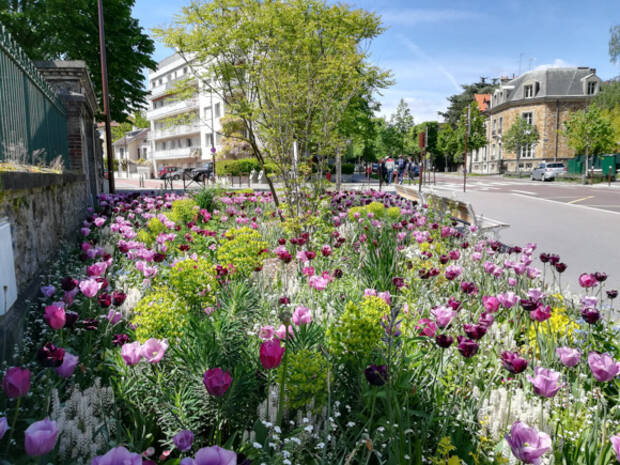 Ils sont revégétalisés par des plantations d’arbres en alignement et dans les cantons, profitent de la création de massifs fleuris composés en majorité de vivaces et de prairies naturelles et fleuries fauchées tardivement.