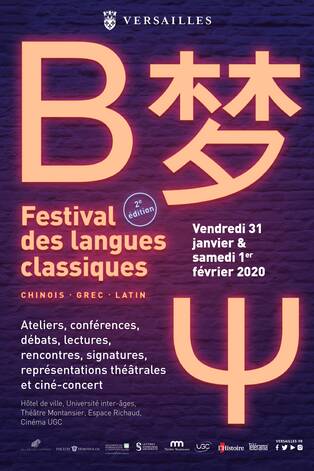 Deux jours dédiés au latin, au grec et au chinois ! Un programme imaginé pour faire vivre ces langues : des conférences, du cinéma, des spectacles et des ateliers accessibles à tous à l'Université Ouverte de Versailles et à l'Hôtel de Ville.