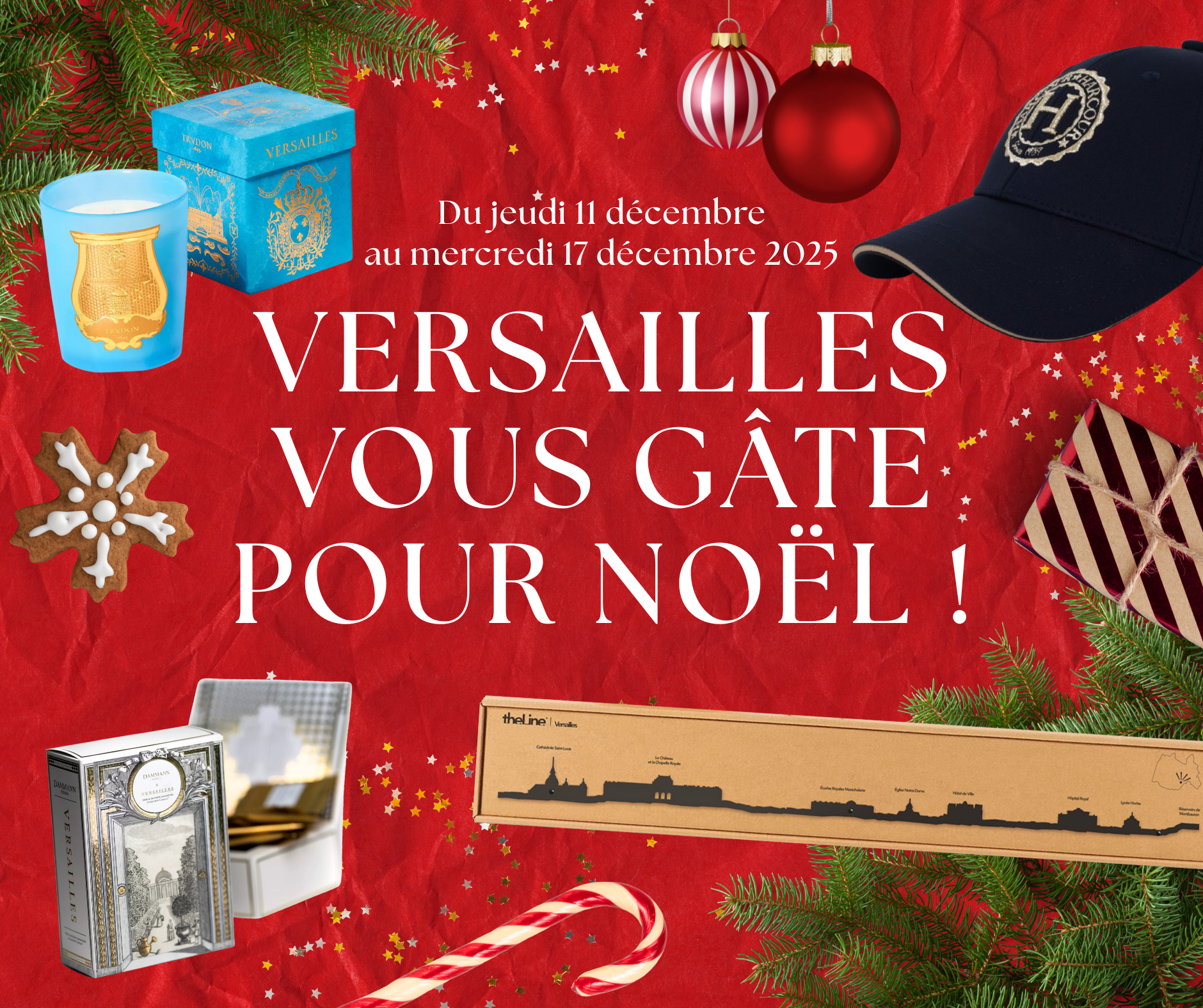 Commerces Jeu concours de Noël : remportez des lots de la « Marque Versailles » ! À gagner sur Facebook : coffrets de thé Dammann, casquettes Harcour, bougies Trudon et skylines The Line !