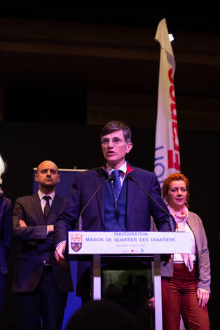 Ce bâtiment a été inauguré le vendredi 14 avril par François de Mazières en présence de Jean-Noël Barrot (ministre délégué chargé de la transition numérique et des télécommunications), Anne Bergantz (députée), Charles Rodwell (député), Michel Laugier (sénateur), Valérie Pécresse (présidente de la région Île-de-France), Pierre Bédier (président du conseil départemental), Sophie Barrois (présidente du conseil d’administration de la CAF des Yvelines), Sylvie Piganeau (conseillère régionale et adjointe au maire à la vie des quartiers) et Claire-Chagnaud Forain (conseillère départementale et adjointe au maire à l'éducation).