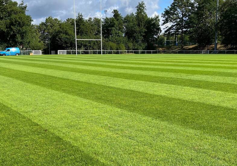 Chaque semaine, les équipes réparent et remettent en état la pelouse afin de garantir un terrain parfaitement plat et une pelouse bien dense. Le gazon doit être très résistant pour tenir sous les appuis des joueurs, les courses, les mêlées, les sauts... C'est un travail méticuleux et régulier pour les jardiniers qui rebouchent à la main avec un mélange de terre et de graines les trous faits par les joueurs.