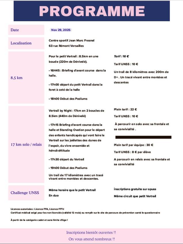 - Équipements obligatoires : 🔦 lampe frontale et 👟 chaussures de trail !