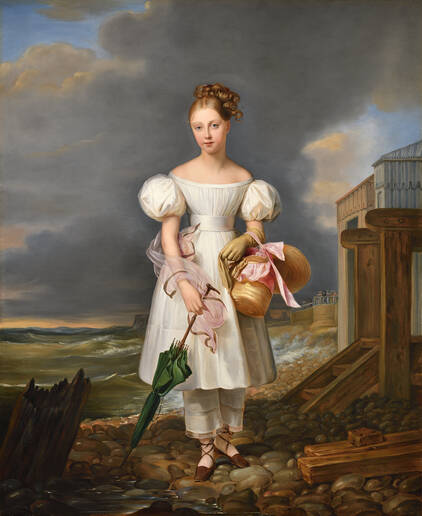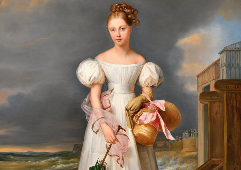 Bandeau de page : Portrait en pied de Louise d’Artois, fille de la duchesse de Berry (détail), Alexandre-Jean Dubois-Drahonet, 1830. The Horvitz Collection