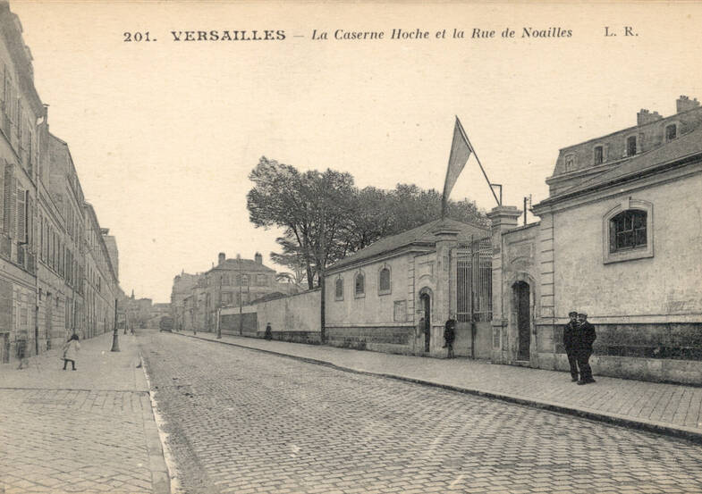 Sous Louis XIV, le terrain aujourd’hui occupé par la rue de Noailles se situe dans les « dehors sordides de Versailles ». Les parcelles côté avenue de Sceaux sont vite occupées par le « camp de Fainéants », cloaque insalubre où se réunissent ouvriers et domesticité inemployés. Avec la pression foncière, la zone est peu à peu urbanisée. On perce la rue, d’abord du côté de l’avenue de Paris en 1737, puis du côté de l’avenue de Sceaux en 1767 où existent déjà de vastes bâtiments servant aux besoins de la Cour, les anciens magasins des Menus-Plaisirs.
