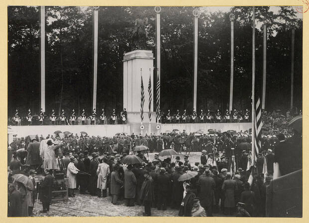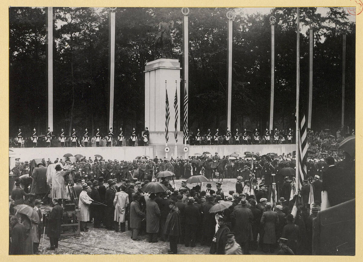 Après sa retraite en 1924, Pershing fonde l’American Battle Monuments Commission, qui supervise la gestion des nécropoles et mémoriaux américains situés en Europe. C’est dans ce cadre qu’il participe à l’inauguration du monument Pershing-Lafayette le 6 octobre 1937.