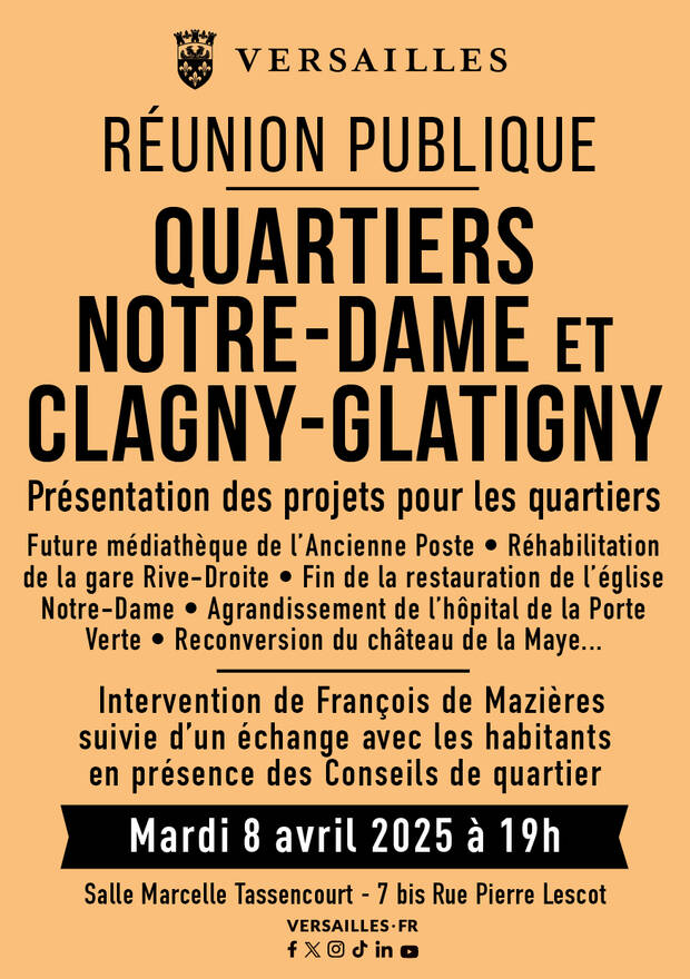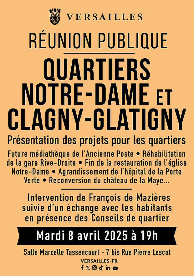 Venez découvrir les projets en cours et à venir des quartiers Notre-Dame et Clagny-Glatigny, présentés par François de Mazières.