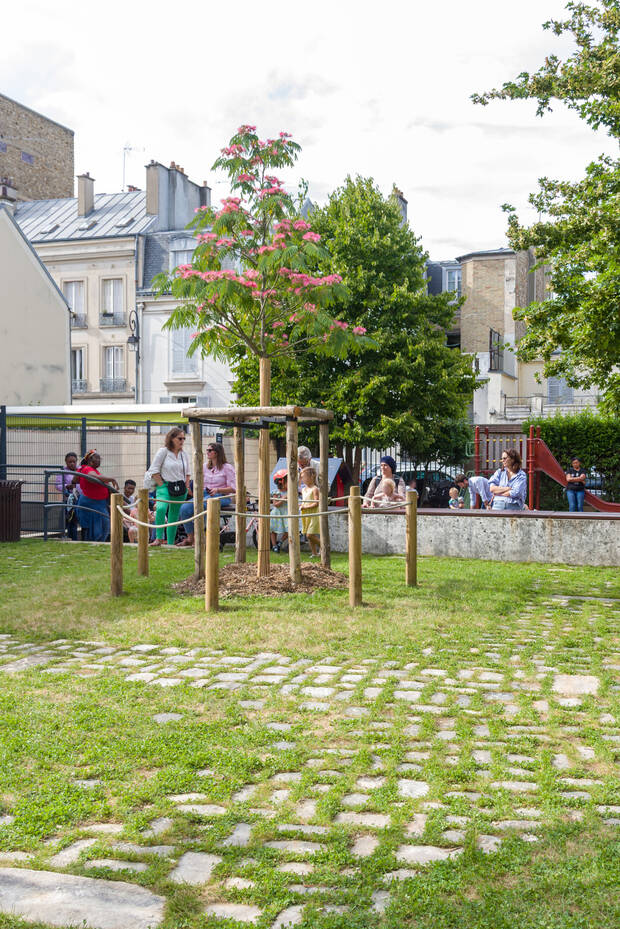 Ce vendredi 27 juin a eu lieu l'inauguration du square Berthier rénové en présence de François de Mazières. Objectif de cette rénovation : transformer cet ancien ilot de chaleur au sol stabilisé en un jardin apportant verdure et fraîcheur.