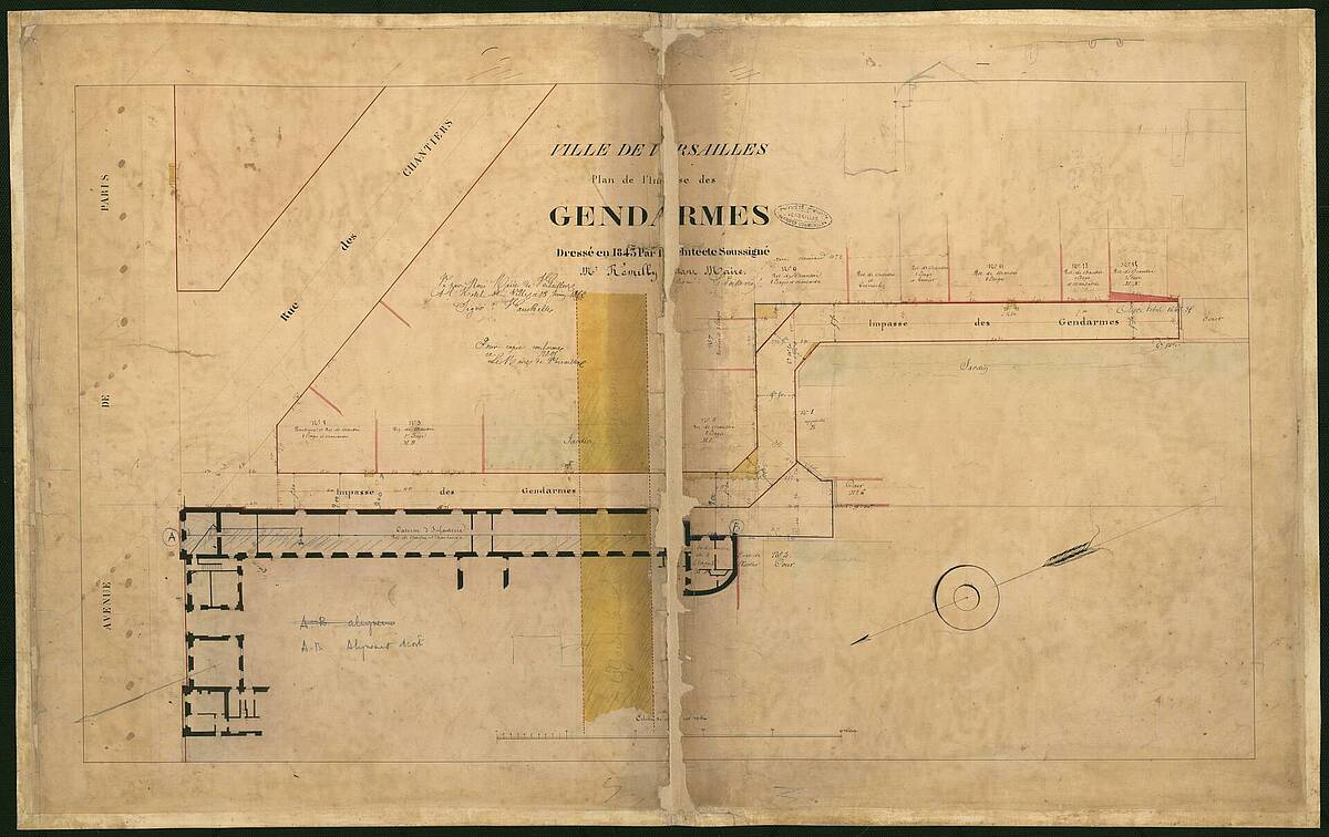 Ces locaux sont la propriété de l’État avant le rachat par la Ville de Versailles, qui en rétrocède les trois quarts à Versailles Grand Parc en 2013. L'hôtel des Gendarmes ne donne plus sur l'impasse mais sur l'avenue de Paris.