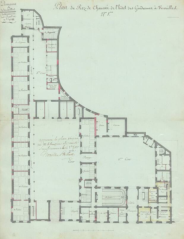 L’ordonnance royale du 1er octobre 1787 supprime ce corps, laissant ainsi les locaux vacants. L’année suivant, le comte de Noailles, gouverneur de Versailles, l’affecte au corps des Invalides chargés de la Police de la Ville.