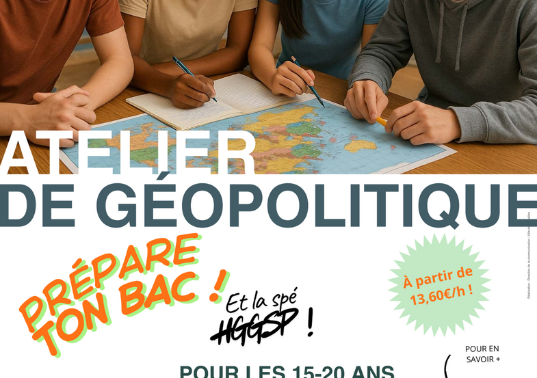 Cet atelier géopolitique s’adresse aux lycéens qui préparent les épreuves du bac et la spécialité HGGSP et aux étudiants qui souhaiteraient consolider et approfondir les thèmes liés à la politique en général et à la politique internationale.