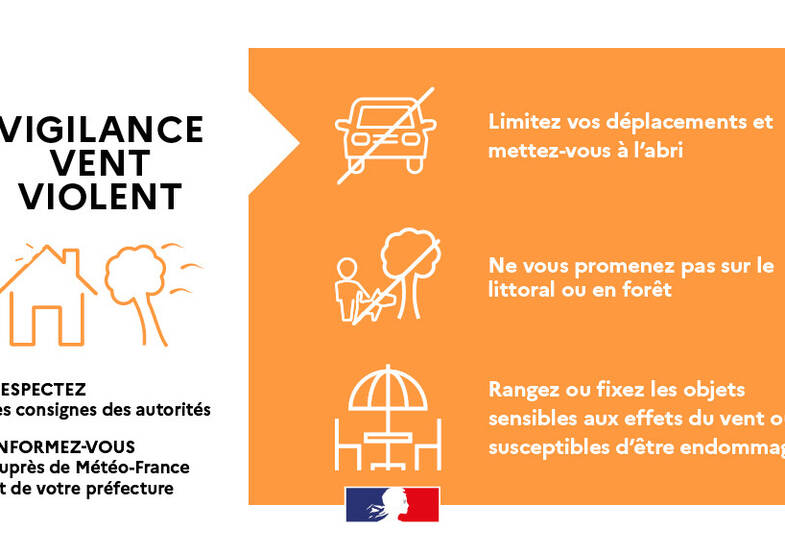 - Il est conseillé de ne pas se promener en forêt, limiter ses déplacements et se mettre à l’abri, ranger ou fixer les objets sensibles.