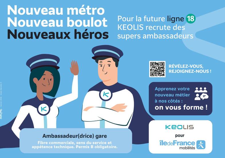 À l’approche de la mise en service de la ligne 18 du Grand Paris Express (sur le tronçon entre Massy – Palaiseau et Christ de Saclay dans un premier temps), Keolis Compagnie du Métro du Grand Paris – Ligne 18 recrute des ambassadeurs en gare et des superviseurs au poste de contrôle pour participer à l’exploitation de cette nouvelle ligne de métro automatique.