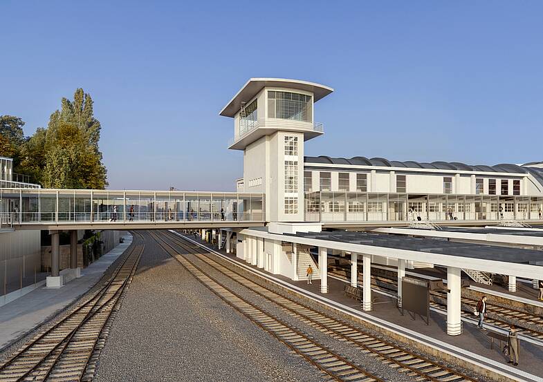 En effet, la passerelle existante reliant la gare SNCF Versailles-Chantiers et la sortie vers la rue de la Porte de Buc est démolie puis reconstruite, tout au long de l’année 2026. Elle sera élargie, couverte et close par de grandes baies vitrées toute hauteur, et deviendra un véritable trait d’union entre la gare SNCF et la gare de la Ligne 18. Réalisées par SNCF Gares & Connexions, ces opérations de démolition puis de reconstruction de la passerelle seront menées de nuit et lors de sept grands weekends ; elles nécessiteront des fermetures ponctuelles de l'accès Porte de Buc.