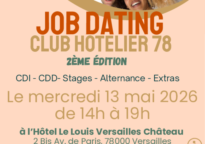 Lors de cette journée de recrutement dédiée aux métiers de l'hôtellerie-Restauration, les hôteliers du Club Hôtelier 78 seront présents pour rencontrer les candidats pour tout types de postes et de contrats : CDI, CDD, Job d'été, Extras, Stage, et Alternance.
