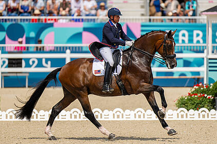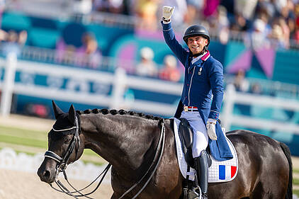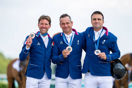 L’équipe de France de concours complet composée de Karim Laghouag sur Triton Fontaine, Nicolas Touzaint sur Diabolo Menthe et Stéphane Landois sur Chaman Dumontceau a remporté la médaille d’argent. Il s’agissait de la troisième médaille olympique d’affilée pour cette équipe qui avait remporté l’or à Rio et le bronze à Tokyo.