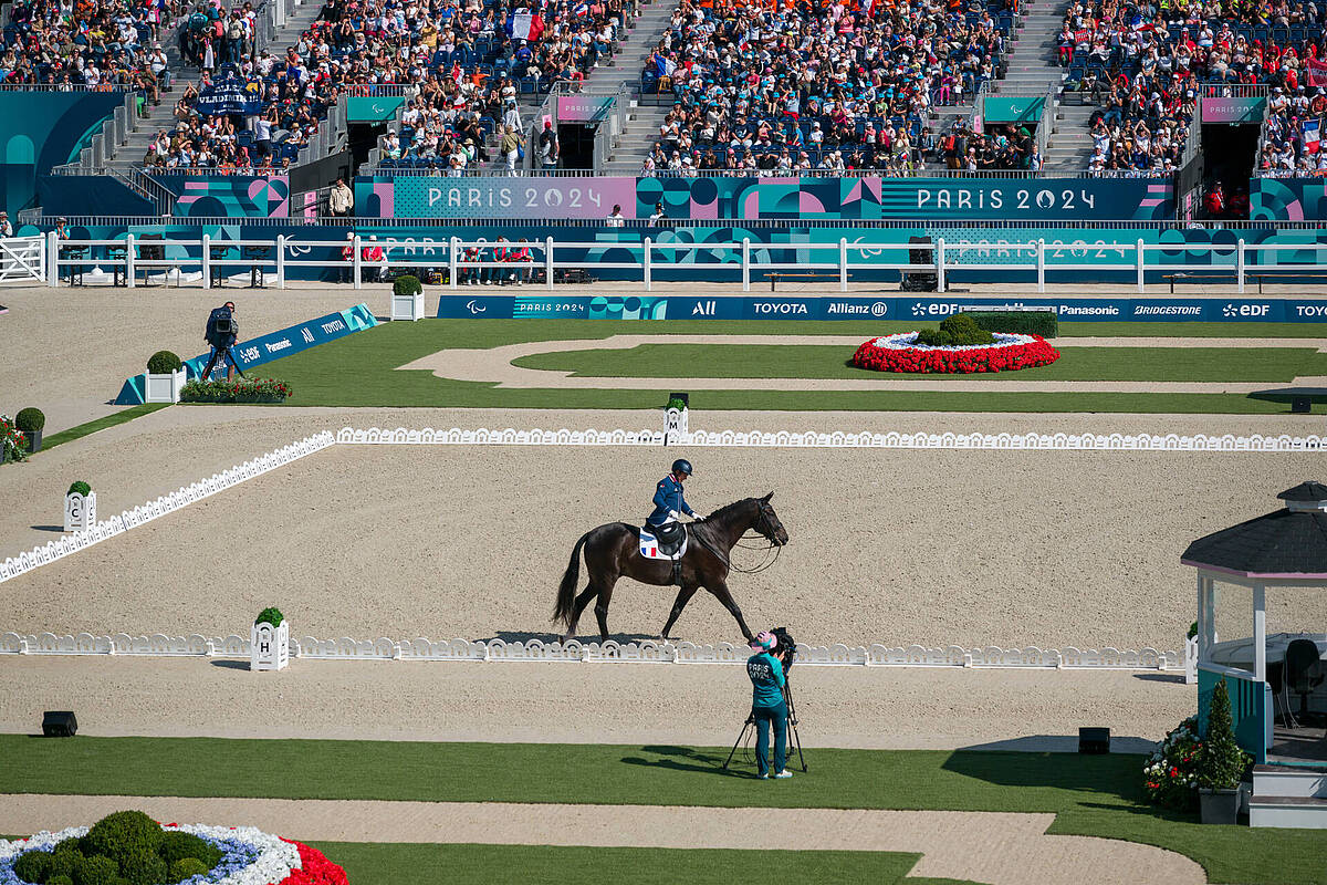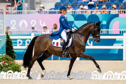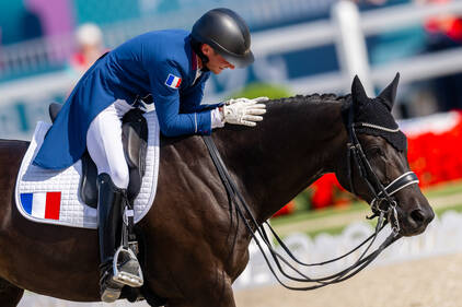 L’équipe de France de dressage composée d’Alexandre Ayache sur Holmevangs Jolene, Pauline Basquin sur Sertorius de Rima Z*IFCE (16ème au classement individuel) et Corentin Pottier sur Gotilas du Feuillard arrivent 6ème au classement par équipes.