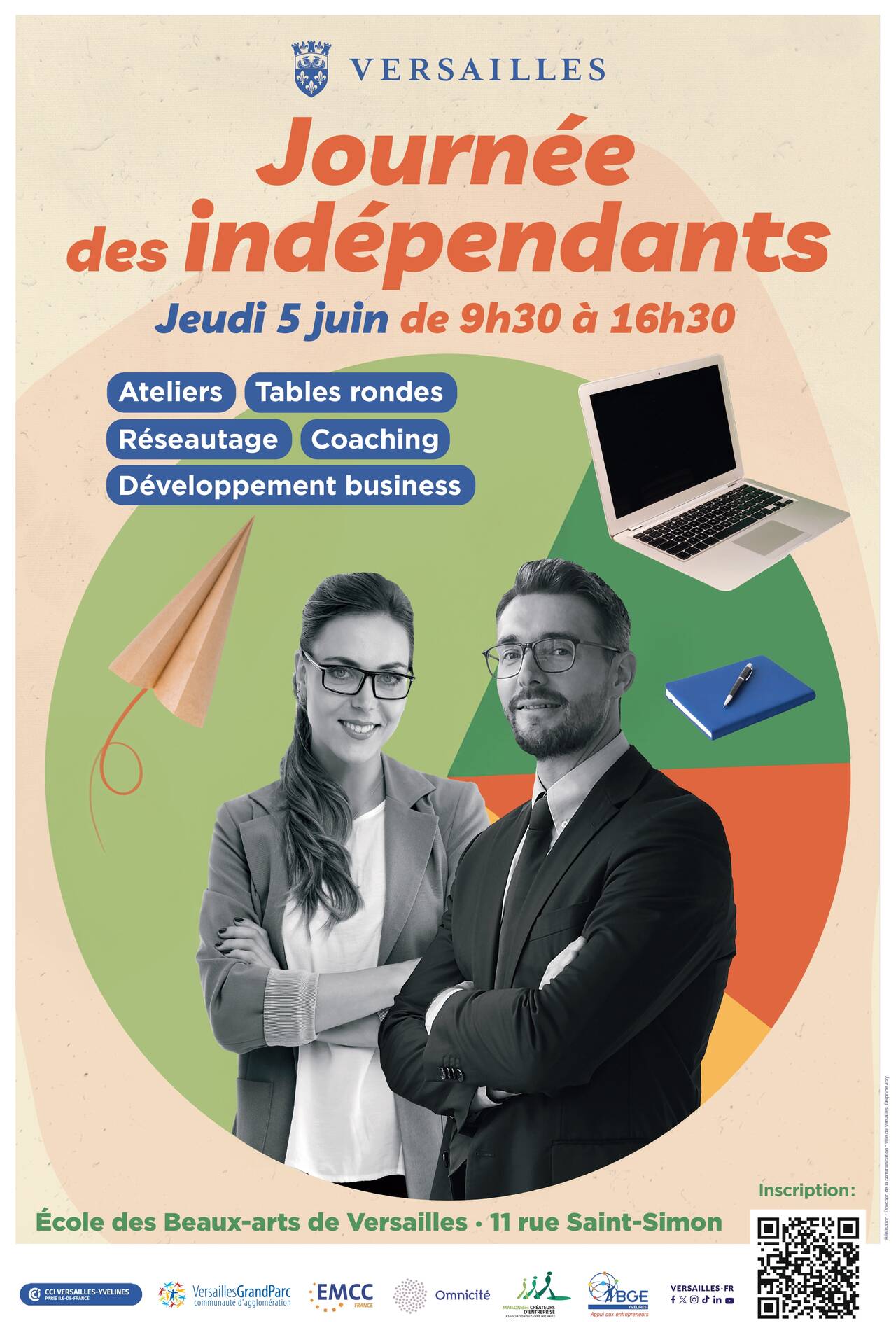 Le 5 juin, la Ville de Versailles a organisé la première édition de la Journée des indépendants, en collaboration avec des acteurs clés de l'entrepreneuriat local : la coopérative Omnicité, la Chambre de Commerce et d'Industrie Versailles-Yvelines, l'association Suzanne Michaux, BGE Yvelines, l'association EMCC et la Maison des entreprises de Versailles Grand Parc.
