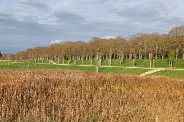 - La Plaine du Grand Pré, situé à la Pointe Nord du quartier, agit comme une prairie inondable pour stocker temporairement les pluies excédentaires, ensuite rejetées dans le réseau d’assainissement de l’agglomération de Versailles Grand Parc. Cette prairie est d’ailleurs dimensionnée pour accueillir des pluies exceptionnels (décennales à centennales).