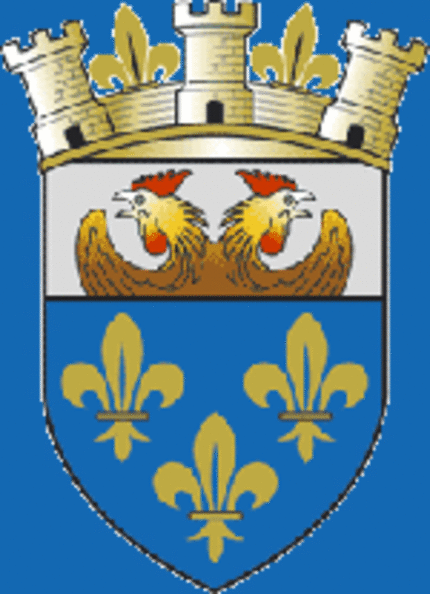 Les armoiries de la ville sont apparues pour la première fois en 1789. Après les tribulations et transformations diverses voulues par les différents régimes qui se succédèrent, la Commission Départementale d'Héraldique les enregristra en 1944. Elle en fit le blason qui se lit : "d'azur à trois fleurs de Lys d'or au chef d'argent chargé d'un coq bicéphale issant au naturel ". L'écu est timbré de la couronne murale d'or des Villes royales et soutenu par deux palmes d'or croisées en pointe en sautoir. Si la partie basse de l'écusson représente indiscutablement la maison royale de France, la plus libre interprétation peut être donnée à la partie supérieure. La plus vraisemblable des hypothèses paraît être le symbole de vigilance représenté par les deux coqs, vigilance avec laquelle. la municipalité et la garde civique devaient remplir leur double devoir envers le Roi et la Cité. 1944 précise seulement que le coq bicéphale issant symbolise les libertés naissantes.