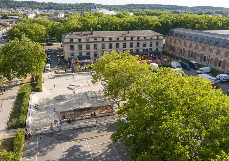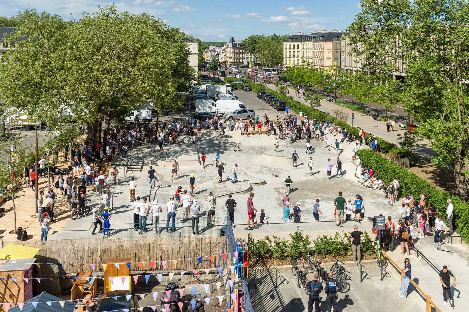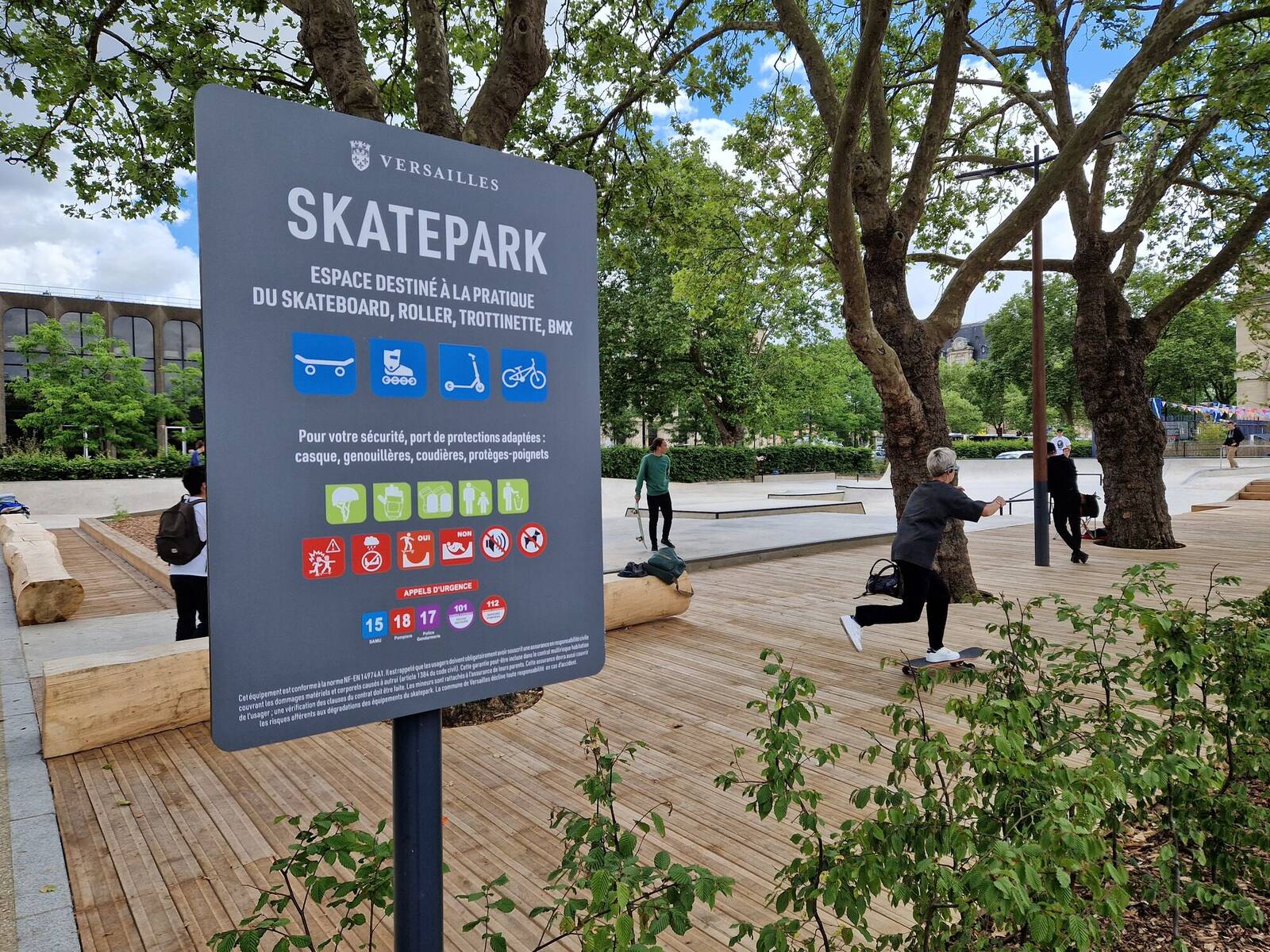Le skatepark tant attendu par les jeunes Versaillais s’est installé au cœur de la ville, sur le parking de l’Europe. Pensé et conçu en concertation avec les pratiquants, il intègre plusieurs modules et surfaces de glisse en parfaite harmonie avec l’environnement public.