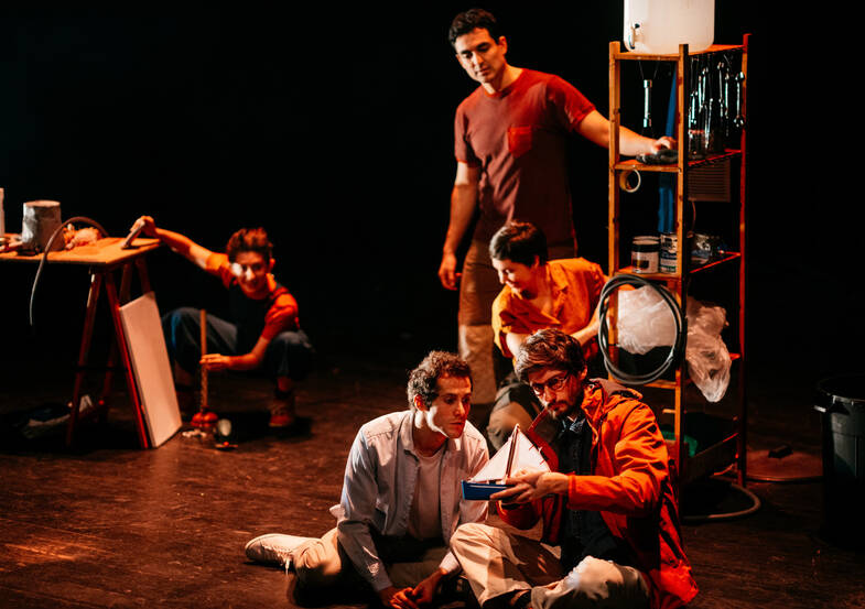 Un travail d’orfèvre ! Ils sont cinq et se sont rencontrés à l’École internationale de théâtre Jacques Lecoq. Cinq jeunes comédiens formés à l’art du mouvement, du chant, du mime et du bruitage. D’une inventivité folle, ils nous racontent ici avec humour et poésie les aventures de Frantz. Créant des atmosphères sonores saisissantes grâce à une perceuse, des sacs en plastiques, des seaux d’eau, du papier, du verre, de la tôle et bien d’autres matériaux, ces artistes nous transportent dans une histoire sensorielle pleine de délicatesse et de malice et réussissent à créer un cocktail de sensations visuelles et auditives au service de l’histoire de Frantz.