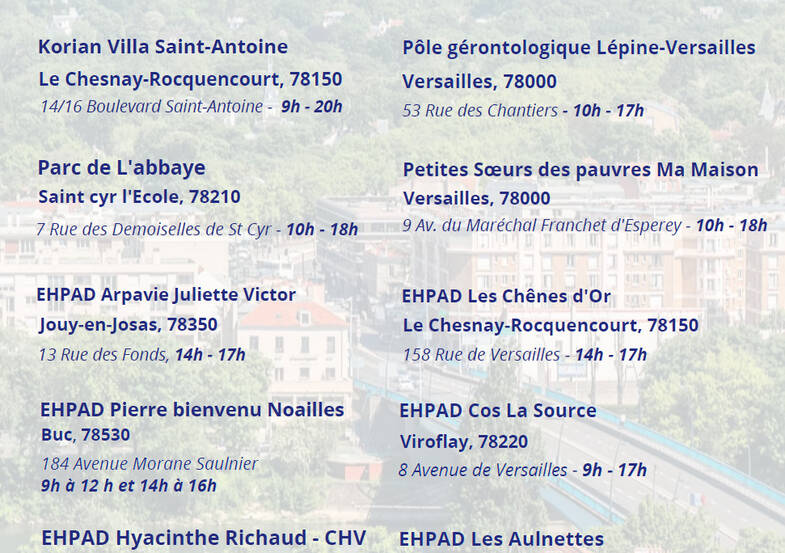 EHPAD Pierre bienvenu Noailles, de 9h à 12h et de 14h à 16h (184 avenue Morane Saulnier, 78530 Buc)