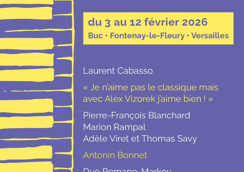 L’événement s’ouvre à Versailles avec la master-classe de Laurent Cabasso, pianiste et professeur de renommée (qui a fait une partie de ses classes au Conservatoire de Versailles). Le duo Romano-Markov se produit à Buc pour un concert à 4 mains sur la thématique de l’enfance.