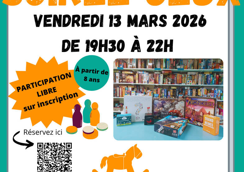 La Ludothèque vous invite à participer à sa nouvelle soirée jeux, seul, en famille ou entre amis, pour un moment complètement ludique autour de nos jeux de société ! Dès 8 ans.