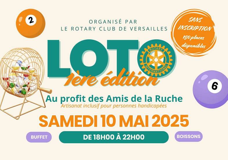 Loto organisé par le Rotary Club de Versailles. Nombreux lots à gagner. Buffet et boissons sur place. Au profit des Amis de la Ruche.