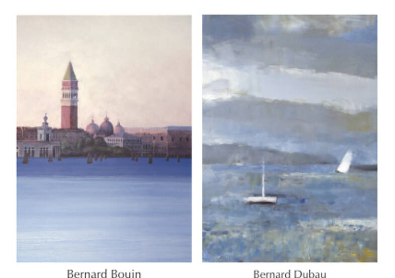 Les peintures de Bernard Bouin, autour de Venise et des paysages nocturnes s'harmonisent avec les peintures de Bernard Dubau, autour de la musique et des paysages marins et enneigés.