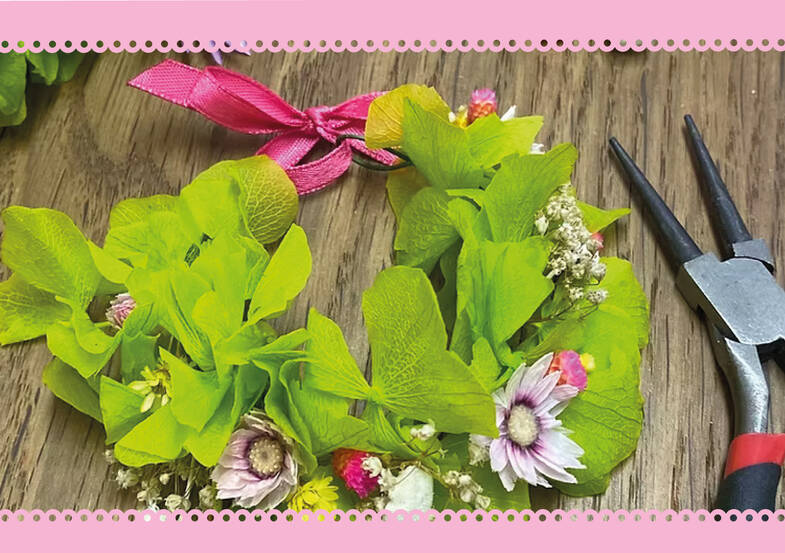 Création d'un bracelet et d'accessoires cheveux en fleurs stabilisées.