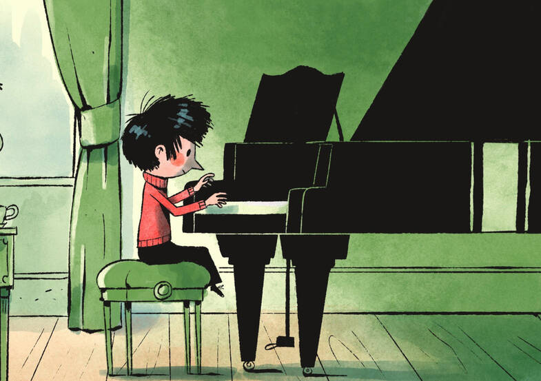 Martha va initier Pierrot au piano. Au fur et à mesure des leçons, l’enfant va s’approprier ce nouveau langage, et la musique deviendra son moyen d’expression.