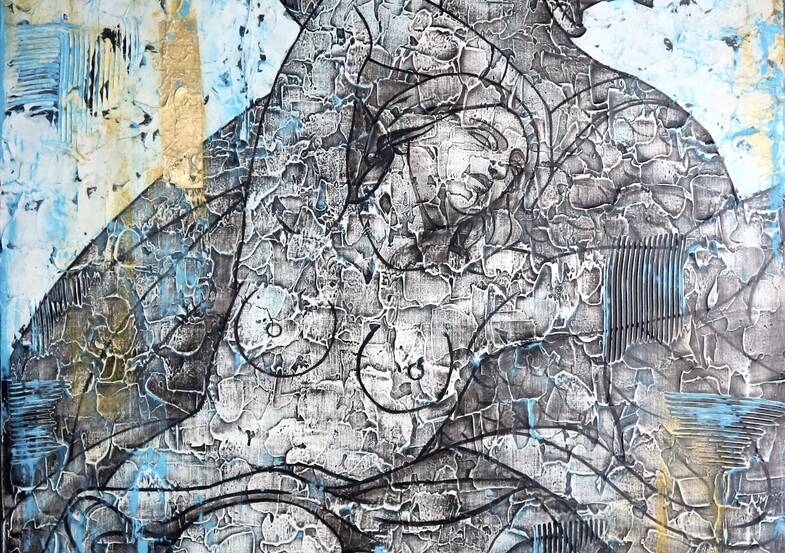 Inspirée par les textures et les craquelures du raku, elle intègre ces éléments dans ses peintures pour créer des effets visuels uniques et captivants. Les textures sculpturales ajoutent une dimension supplémentaire à ses œuvres, invitant les spectateurs à explorer les profondeurs de ses compositions avec leurs sens tactiles autant que visuels.