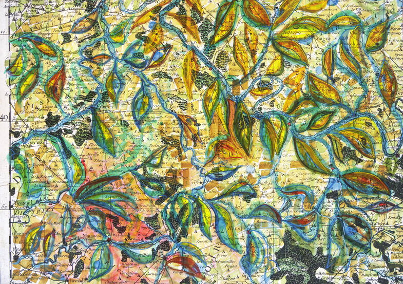 Intitulée Cartographies du Paysage, l’exposition présente une série d’œuvres issues d’un travail de réinterprétation des cartes anciennes, notamment celles de l’époque de Louis XIV.