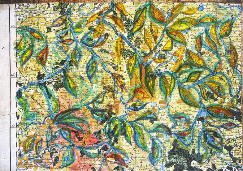 Cartographies du Paysage : Exposition Caroline Bouquet – Bibliothèque Choiseul de Versailles Octobre 2025 Accrochage des œuvres de l’artiste Caroline Bouquet dans la salle Holmès.