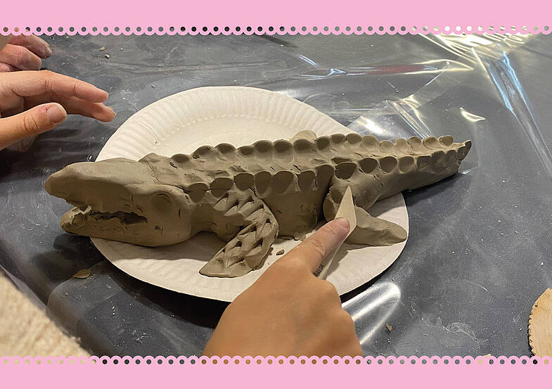 A partir d'une boule d'argile modeler ensemble les différentes parties qui composent un crocodile puis s'amuser à faire ses écailles, ses dents... Le plaisir du toucher de l'argile, de voir un animal prendre forme sous vos doigts et aussi de créer ensemble à deux.