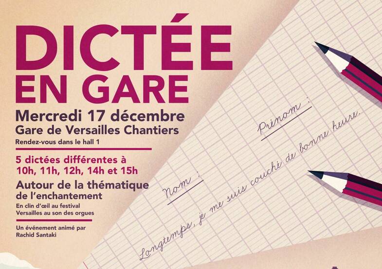 Mercredi 17 décembre, la Dictée en Gare fait étape à la gare Versailles Chantiers ! Elle sera animée par le journaliste et romancier Rachid Santaki (alias Monsieur Dictée).