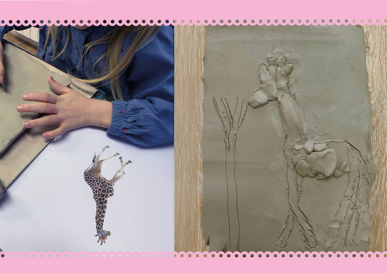 A partir d'une plaque d'argile et de photographies, venez tracer la silhouette d'une girafe puis lui donner corps en volume sur un bas-relief en argile. Cet atelier permet de partager un agréable moment d'apprentissage en duo autour d'une création sur le thème de cet animal si cher aux enfants !