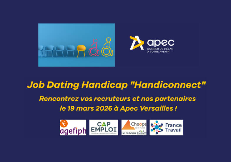 Que vous soyez cadre en poste, alternant(e) en Master 1 ou 2, stagiaire en fin d’études supérieures ou jeune diplômé(e) Bac +3 à 5, venez faire avancer votre projet professionnel et obtenir des conseils personnalisés pour vos démarches emploi et handicap.